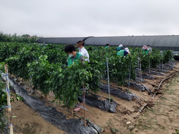 충주시 봉방동새마을(협의회장 안기연, 부녀회장 전옥희)회원 17명은 2021.07.12.(월) 전날 갑자기 발생한 돌풍호우로 인하여 하방마을 고추밭 3,300여㎡에 고추대가 쓰러지는 등 피해가 발생함에 따라 고추대 세우기 등 복구작업을 하는 일손돕기를 하였다.